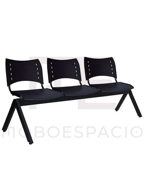 estructura: de acero tubular rectangular de 1 1/2″ X 3″, calibre 16, asientos y respaldos de perfil redondo tubular ponchado de acero con travesaños separadores tubulares redondos de acero con acabado de pintura epóxica (electrostática) color negro.