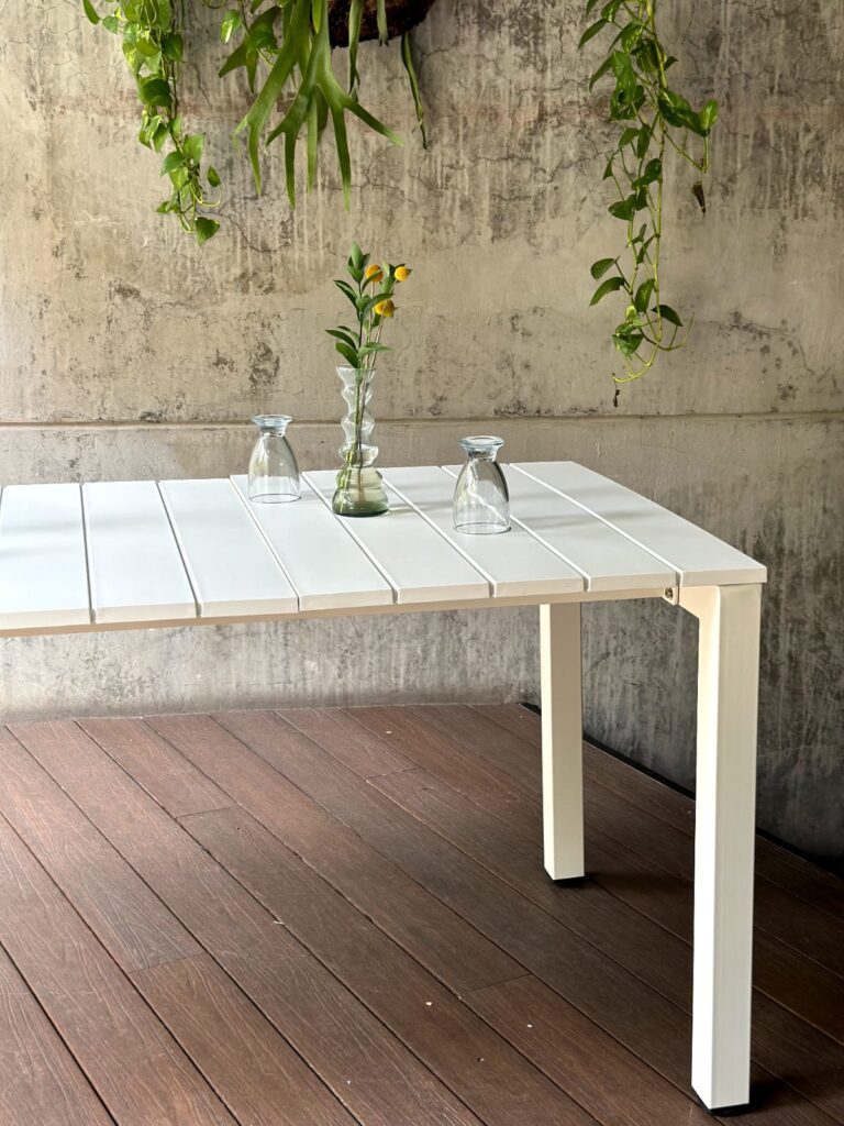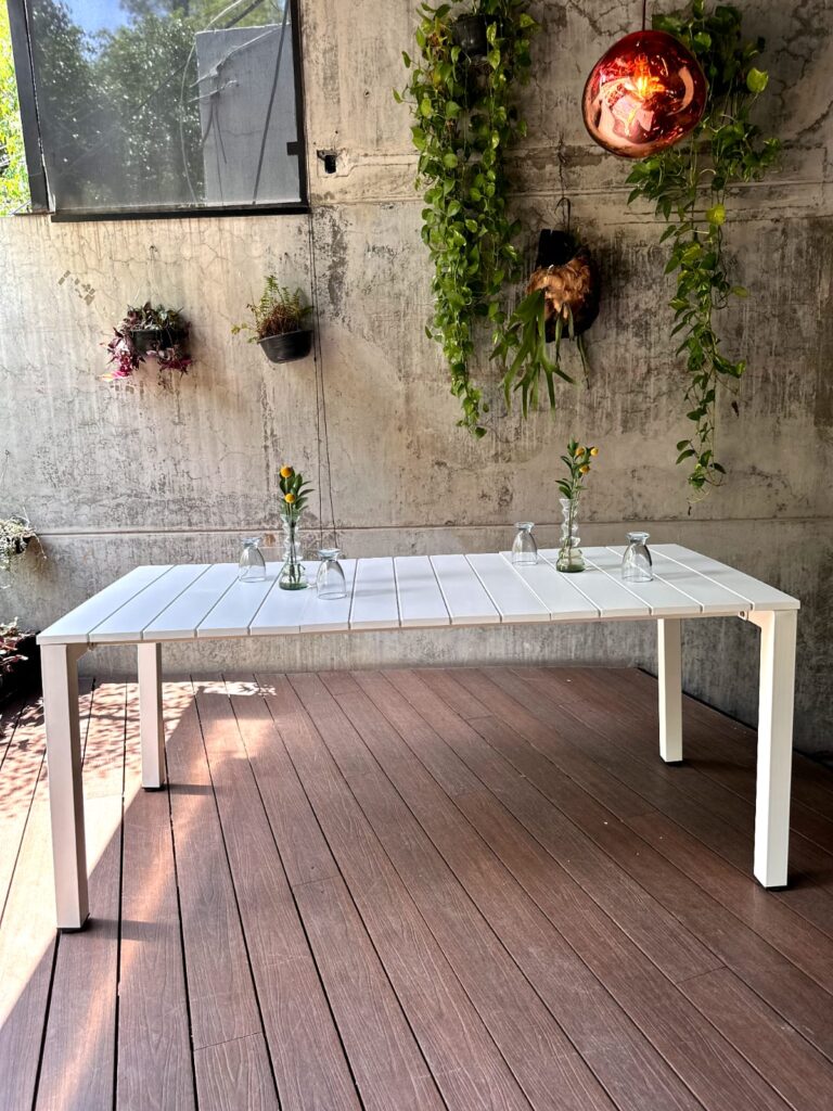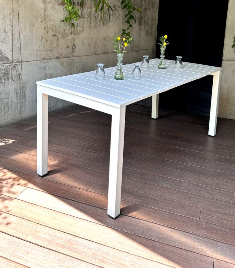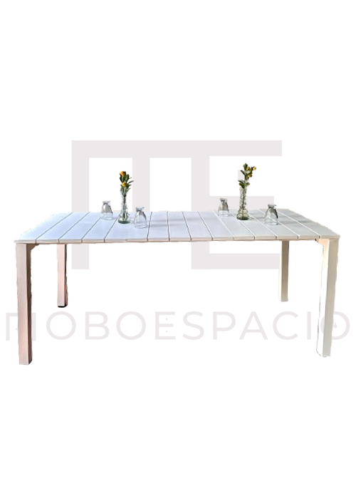 MESA RECTANGULAR DE ALUMINIO INYECCION DE PLASTICO COLOR BLANCO