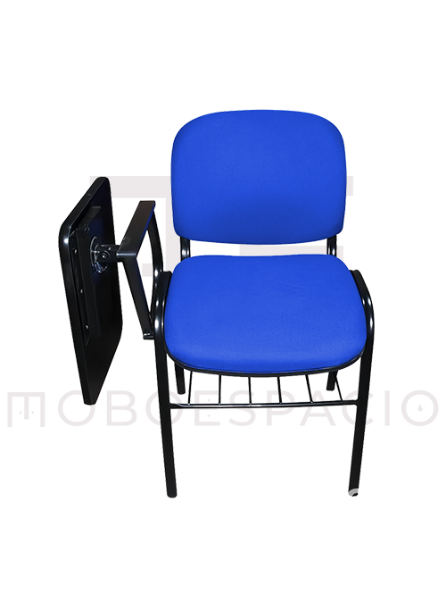 SILLA ISO TAPIZADA CON PALETA DE MELAMINA ABATIBLE AZUL