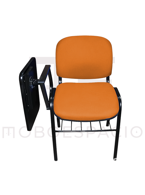 SILLA ISO TAPIZADA CON PALETA DE MELAMINA ABATIBLE NARANJA